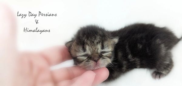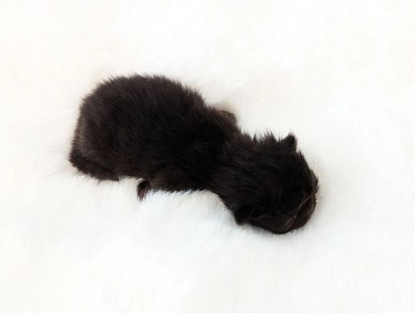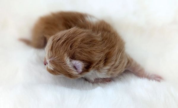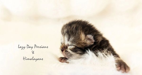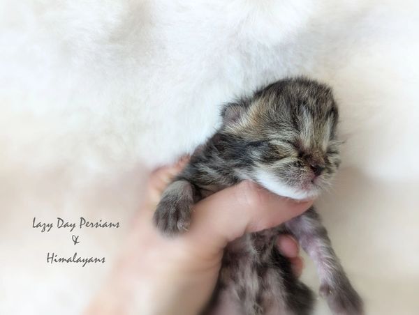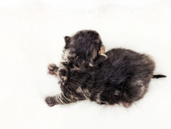 She has a few, small, cream markings on her body that are not that noticeable yet but will become so as she gets bigger and older.